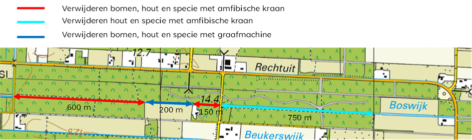 In de Boswijk kan dat niet en gaat een kleine amfibische graafmachine de wijk. Als laatste worden er op enkele plekken lemen 'overloop' dammetjes of stuwtjes geplaats. Ook worden de aanwezige duikers schoonmaken en zo nodig herplaatst.